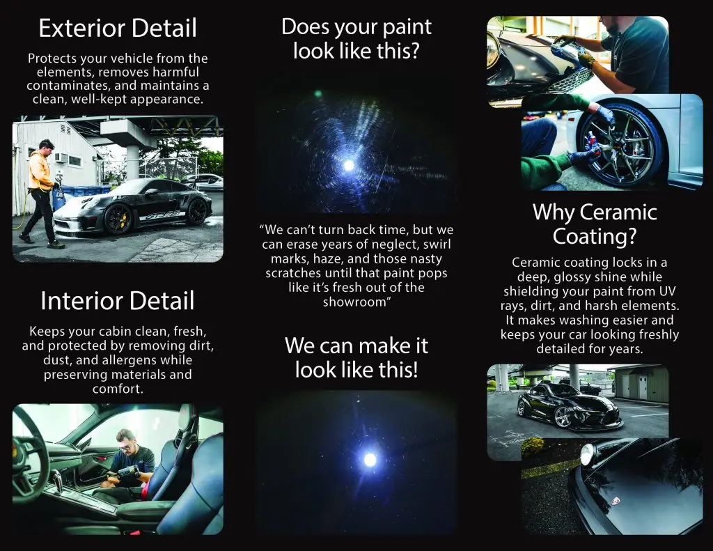 This project was a rush trifold brochure request for Brother’s Auto Salon. The client needed 100 brochures completed by the end of the day because they were expecting them the following day. They had originally ordered brochures online, but the vendor failed to deliver on time. Because of the tight turnaround, my manager assigned the project to me so we could produce everything in-house.
